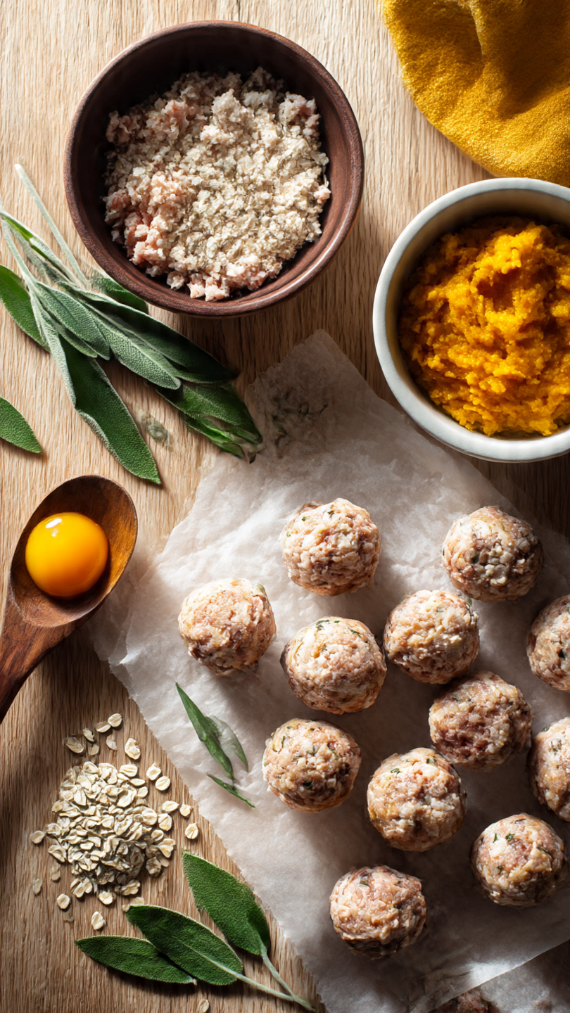 Add the egg and oat flour, stirring until a soft, moldable mixture forms. Add a splash of broth or water if it feels too dry.